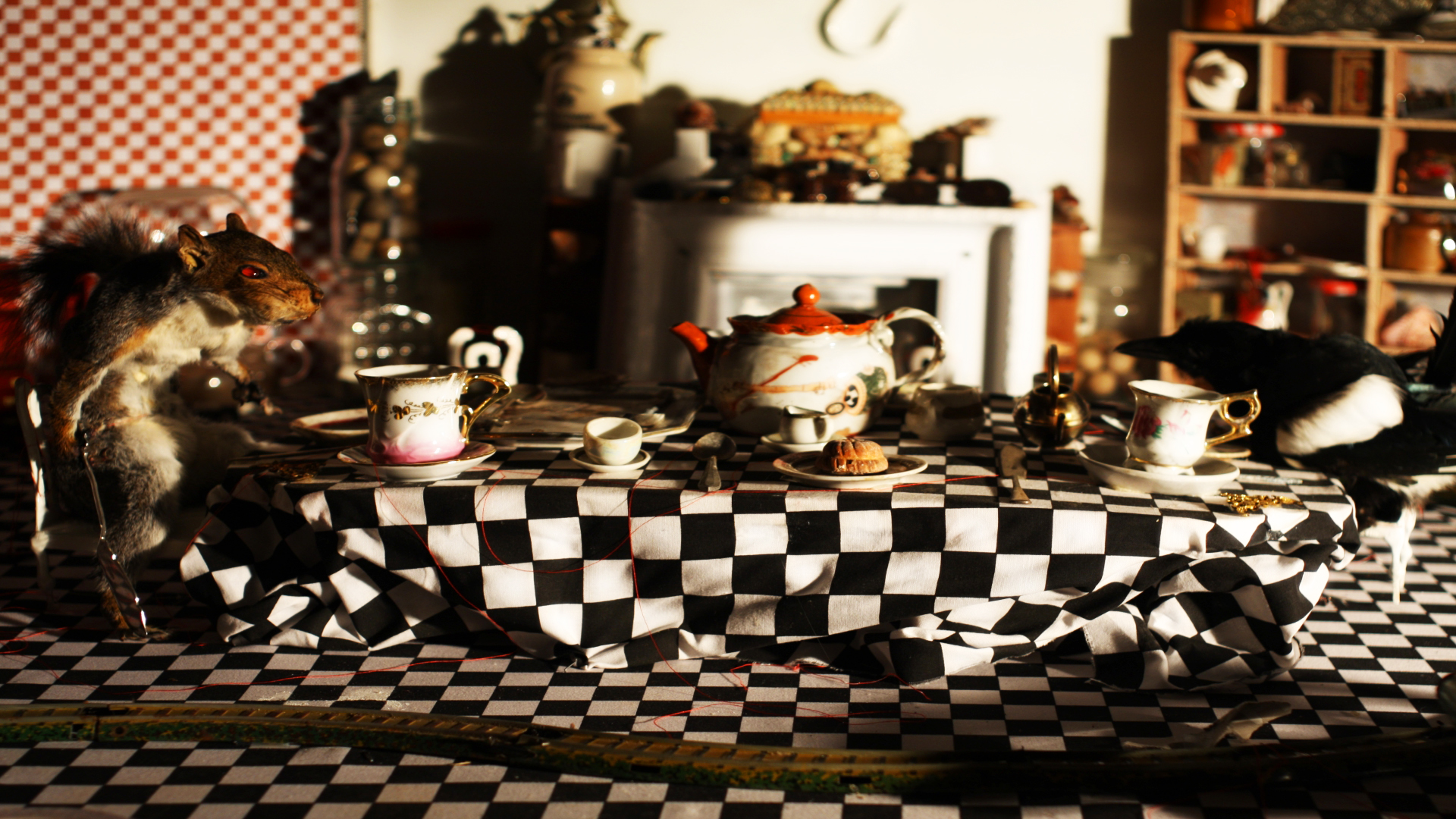 Hidden inside of an abandoned house a strange dual universe awaits an accidental visitor. Amid the disorientating, skewed décor, indiscernible creatures scuttle, jars teem with dark mystery and a shadowy presence resides with ambiguous motives, ready to lure us into it’s rooms of curiosity.